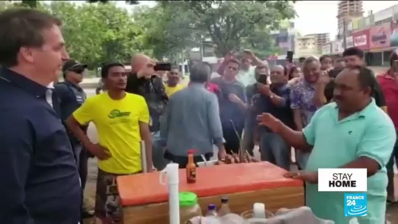 President Jair Bolsonaro on March 29 flouted his government's social distancing guidelines against the spread of the coronavirus by mixing with supporters on the streets of Brasilia and urging them to keep the economy going.